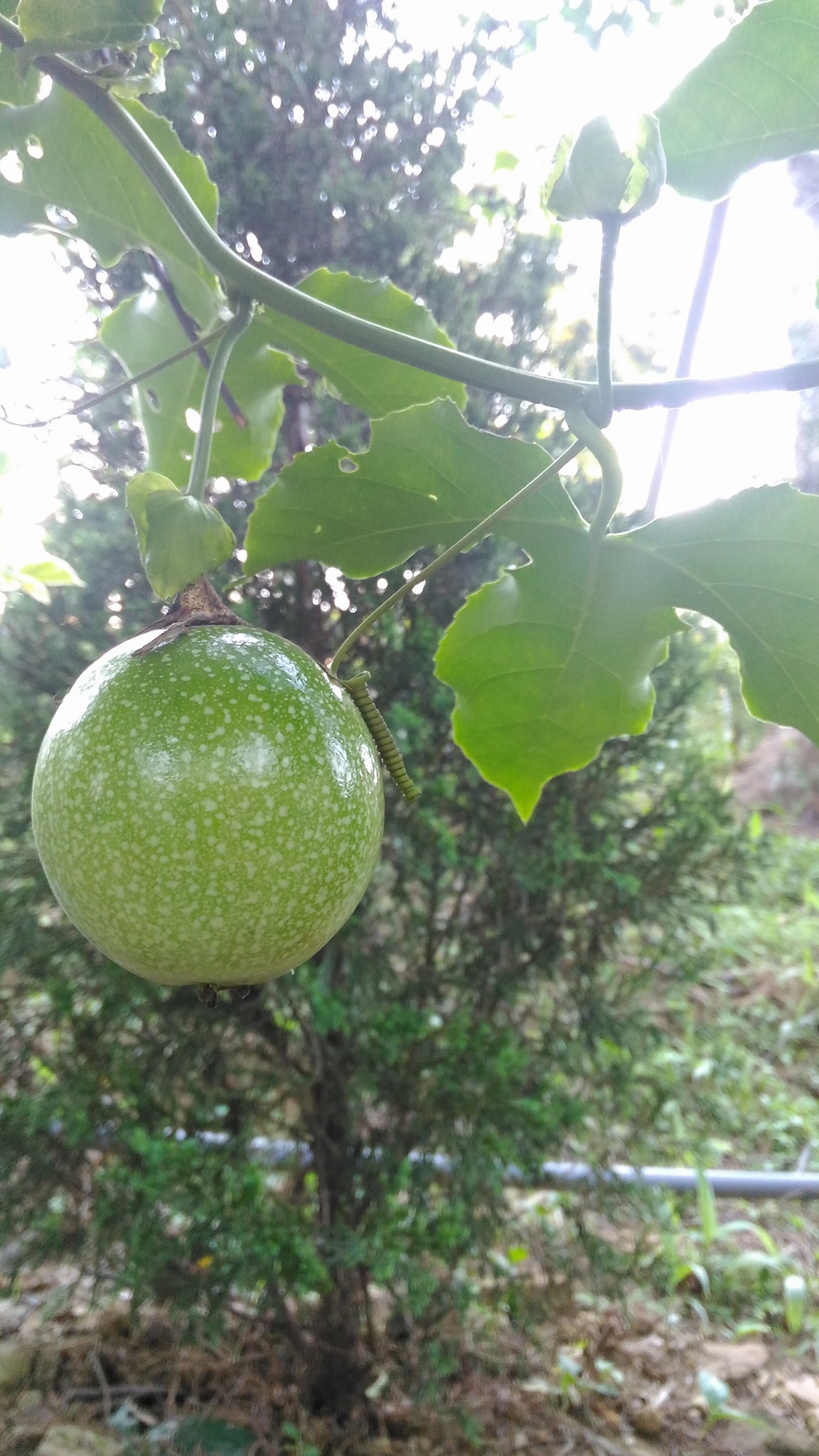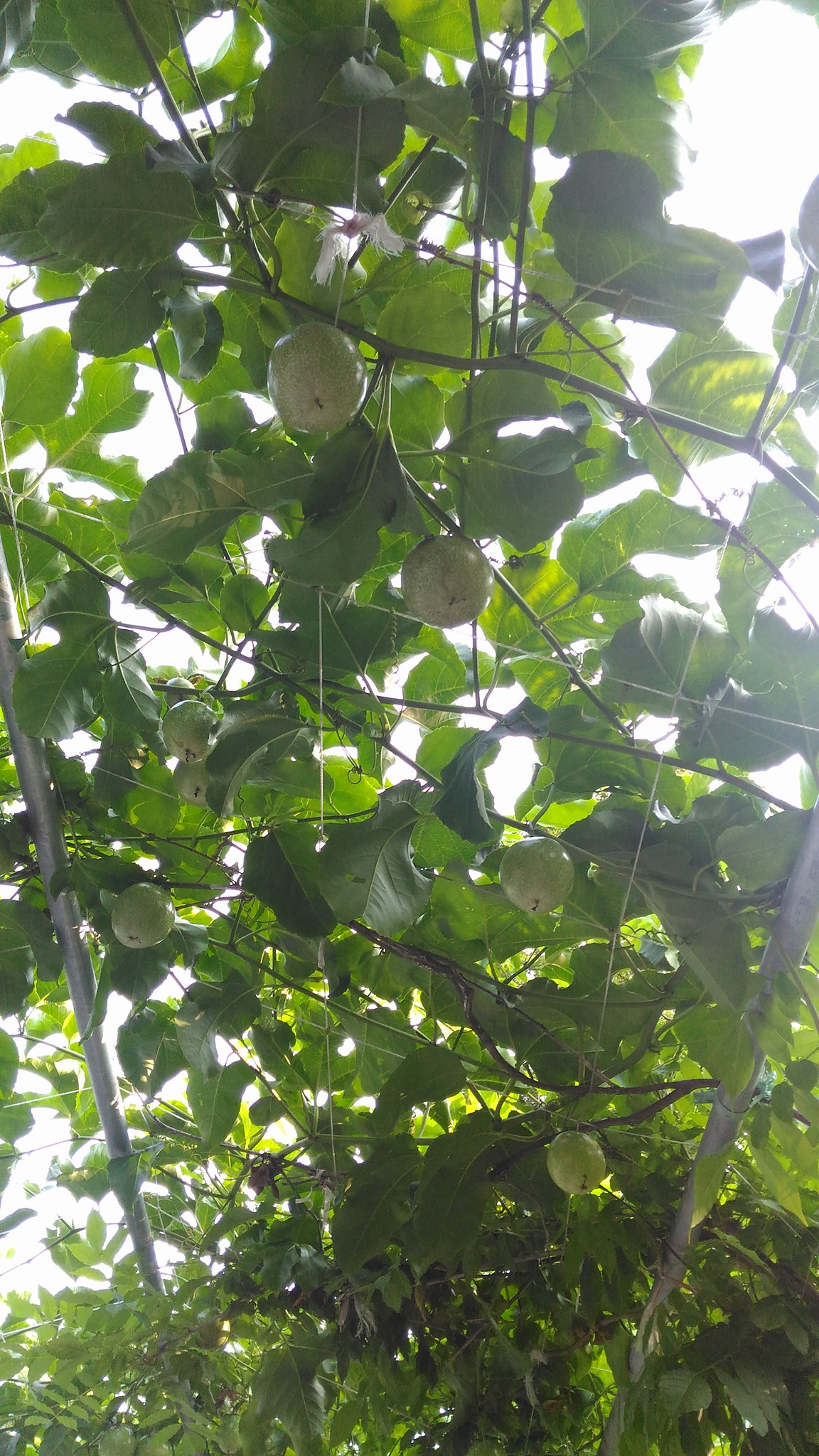 蘇維埃莊園停車場停好車後,入口走道,種了滿滿的百香果,結實累累。