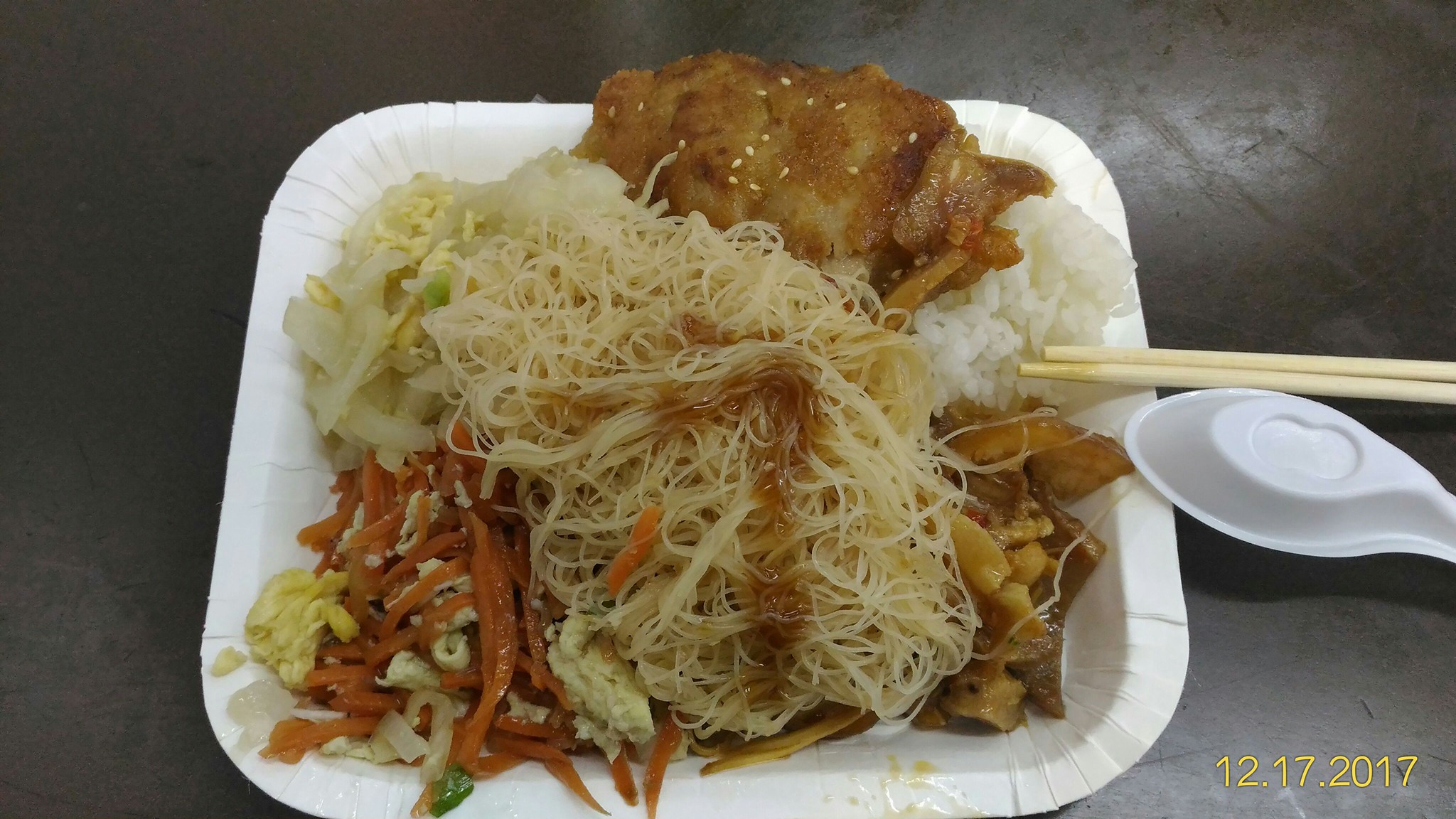 堆成一座小山的大份量,只要一個50元銅板,那個主菜無骨雞腿排還很嫩呢!超好吃。